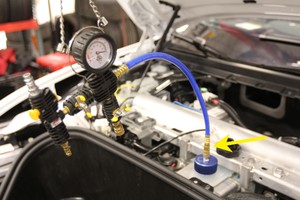NoteRelease the leak tester air line if previously secured.