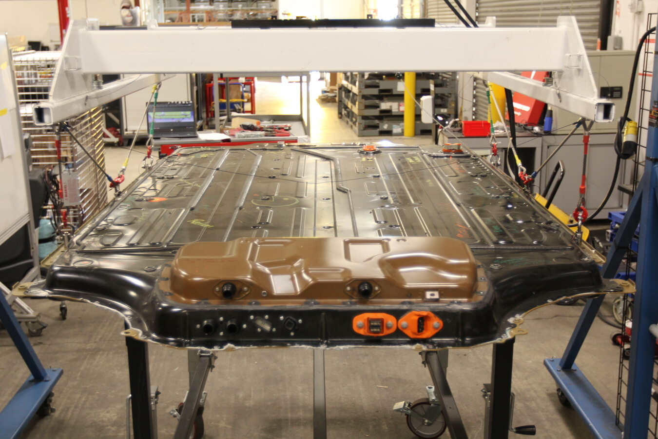 - Position the 2 post lift pads for HV battery removal.