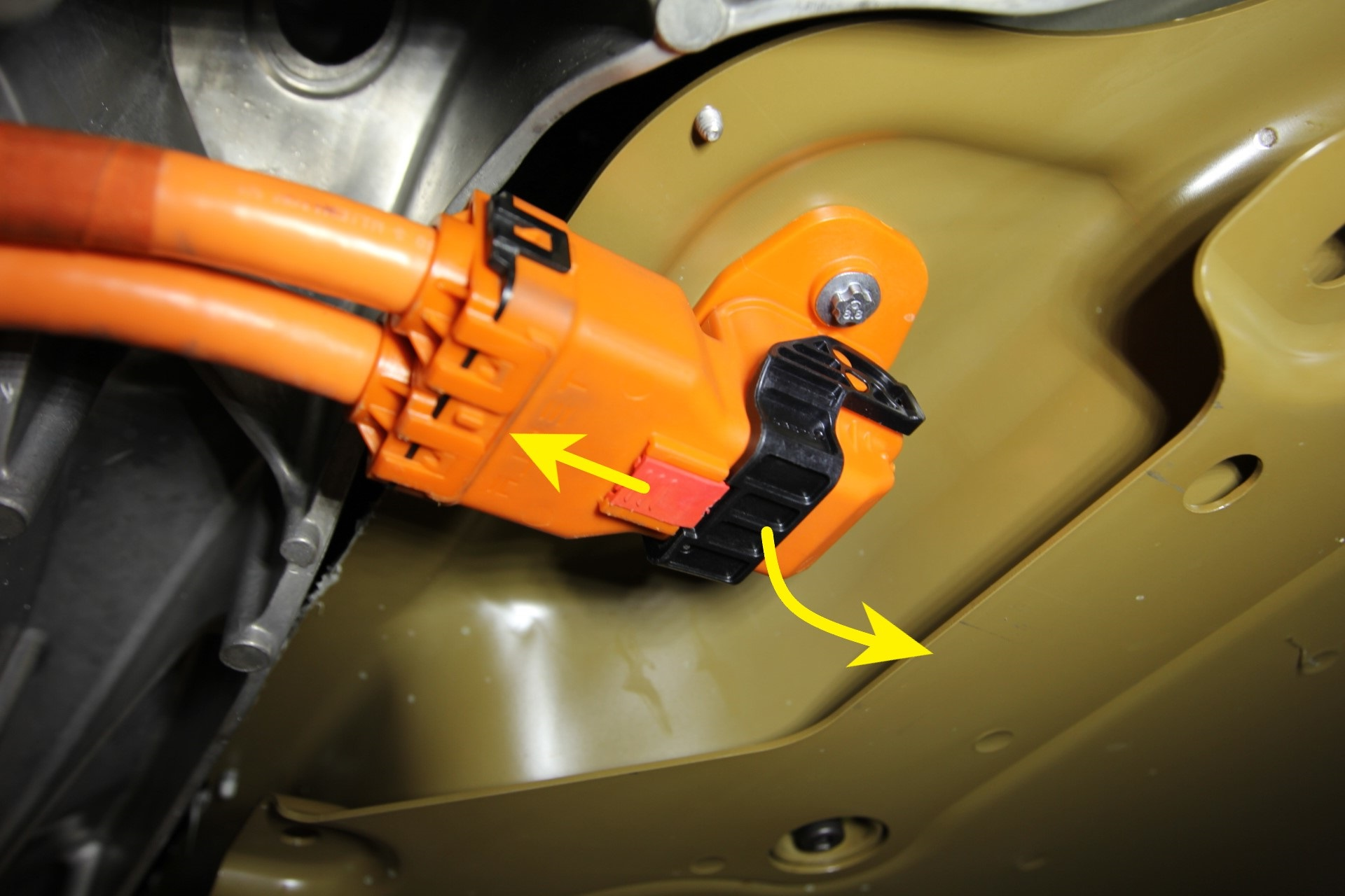 - Release the locking tab, and then disconnect the power connector to the HV battery.
