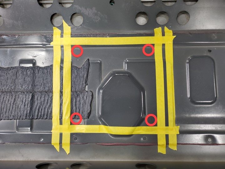 use a power tool to remove the center bolts (x4) securing the HV battery.