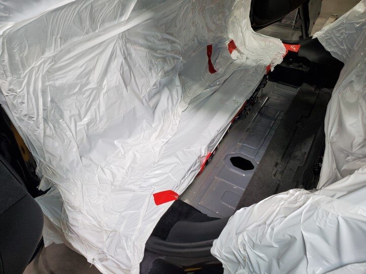 WarningMake sure to wear the proper PPE for using aerosol cans.WarningDo not breathe in fumes.CAUTIONUse a cardboard box to prevent overspray onto other vehicles.