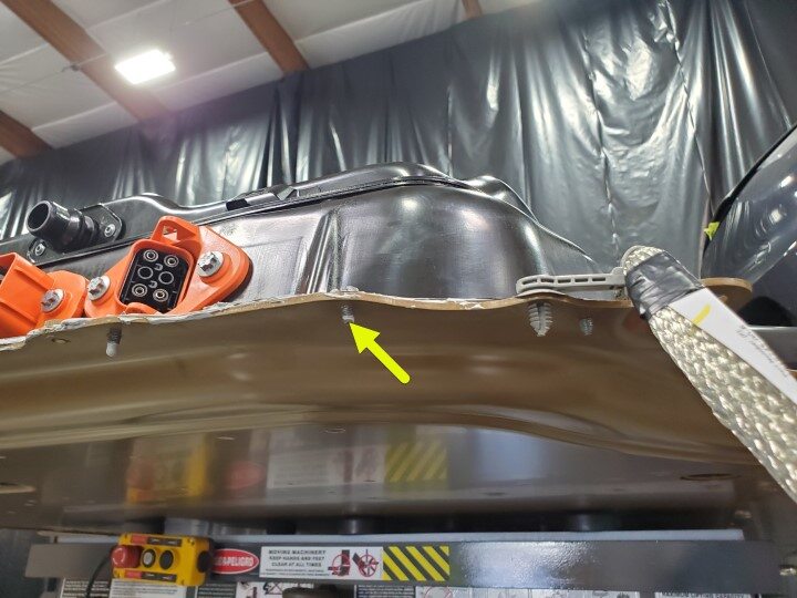 use a power tool to remove the outer center bolts (x4) that attach the HV battery to the