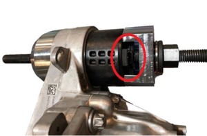 - Pull on red release tab, pull tab again to disconnect the rear subframe electrical harness from the rear drive unit resolver connector, release the clips (x2) that attach the electrical harness to the RH side of the rear drive unit, and move the electrical harness aside.