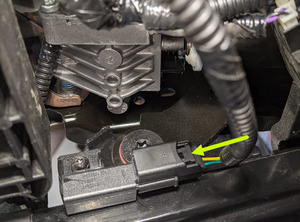 - Slide the OCS harness electrical connector upward to remove it from the SBR bracket, and then disconnect the electrical connector.