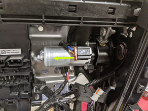 - Position the driver seat controller onto the seat assembly, and then fasten the clips (x3) that attach the controller to the assembly.
