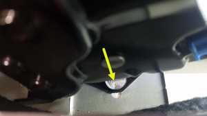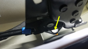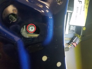- Remove the butyl patch and plug that cover the LH front door exterior handle fastener access holes.