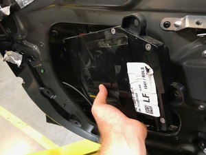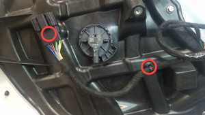 - Partially install the LH front window regulator into the door opening with enough clearance to access the motor harness electrical connector.