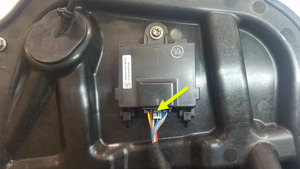 - Pull the white tab to release the connector lock, and then disconnect the LH front door handle controller electrical connector.