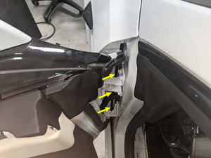 - Position the LH front seal onto the door assembly, and then secure the clips (x4) that attach the seal to the assembly.