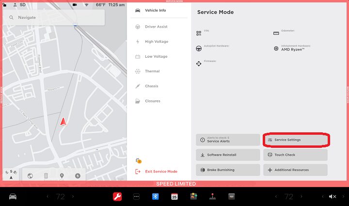 - Disable the "Speed Limit" on the touchscreen: Touch Service > Service Settings > Remove Speed Limit.