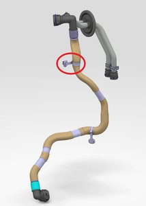 Secure battery supply coolant hose to HV battery.
