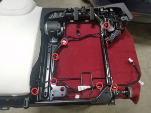 - Place the LH 2nd row seat back assembly upside down on a padded workbench.