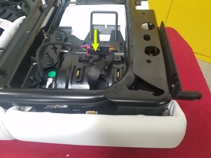 - Slightly tilt the LH 2nd row seat back upward, and then press the LH 2nd row pivot cast downward to secure it to the pivot bracket.