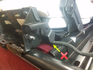 - Release the clip that attaches the LH 2nd row seat back harness to the pivot bracket.