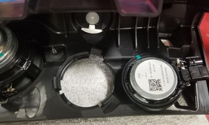 Position the liftgate speakers (x4) onto the center liftgate trim bracket, and then