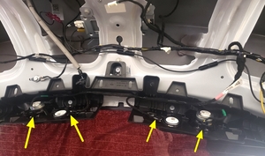 - Install the clips (x2) that attach the liftgate audio harness to the center liftgate trim bracket.