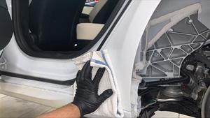 Apply the LH paint protection film to the LH rear quarter panel area.