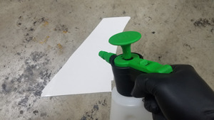 - Soak the front side of the LH paint protection film vinyl with slip solution.