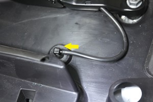Secure washer hose nozzle by LH shock tower cover.