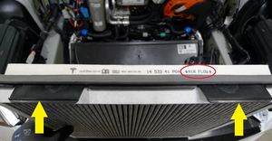 Note2x nuts, 10mm, 7 Nm, Rotate V-brace cross member forward to create access to HEPA assembly retaining nuts, Maneuver assembly forward and up out of vehicle.