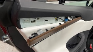 - Position the LH rear door trim decor near the LH rear door trim panel, connect the electrical connector, and then secure the connector to the door panel.