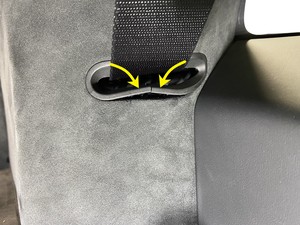- Release the lower tabs (x2) that attach the LH C-pillar seatbelt bezel to the upper C-pillar trim, and then remove the bezel from the upper C-pillar trim.