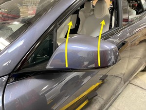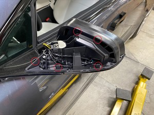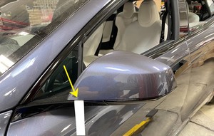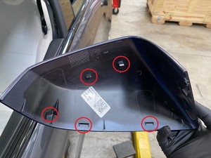 2. Pull up on the door mirror skull cap to release the tabs (x5), and then remove the skull cap from the door mirror assembly.