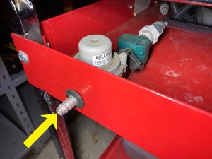 Secure compressed air line to pressure test fixture.