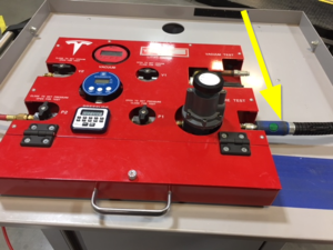 - Secure pressure test fixture hose to leak test adapter.