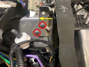 - Install the clip that attaches the air suspension intake line to the RH FEM bracket.