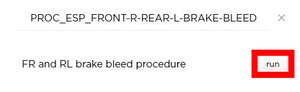 Open the RH front outer brake caliper bleeding valve then Click the play button next to PROC_ESP_FRONT-R-REAR-L-BRAKE-BLEEDvia Toolbox: (link)via Service Mode: