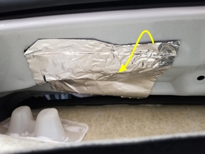 - Remove the butyl patch to access liftgate hinge to body nuts.