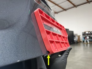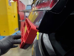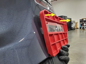 NoteThe badge alignment tool will line up along the RH bottom corner of the liftgate.Tip: Use of the following tool(s) is recommended: