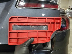 separate the plaid letter badge from the liftgate surface, and then remove the badge