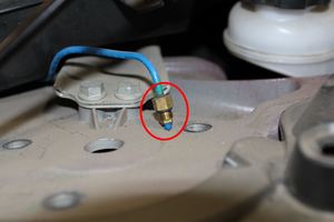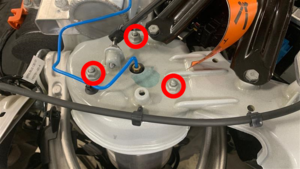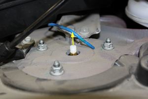 - Remove the bolt that attaches the LH ANC sensor and damper bracket to the LH front active damper, remove the bracket from the damper, and hang the bracket from an S-Hook.