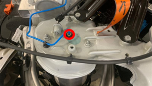 - Remove the bolt that attaches the LH front jounce hose to the LH front active damper.