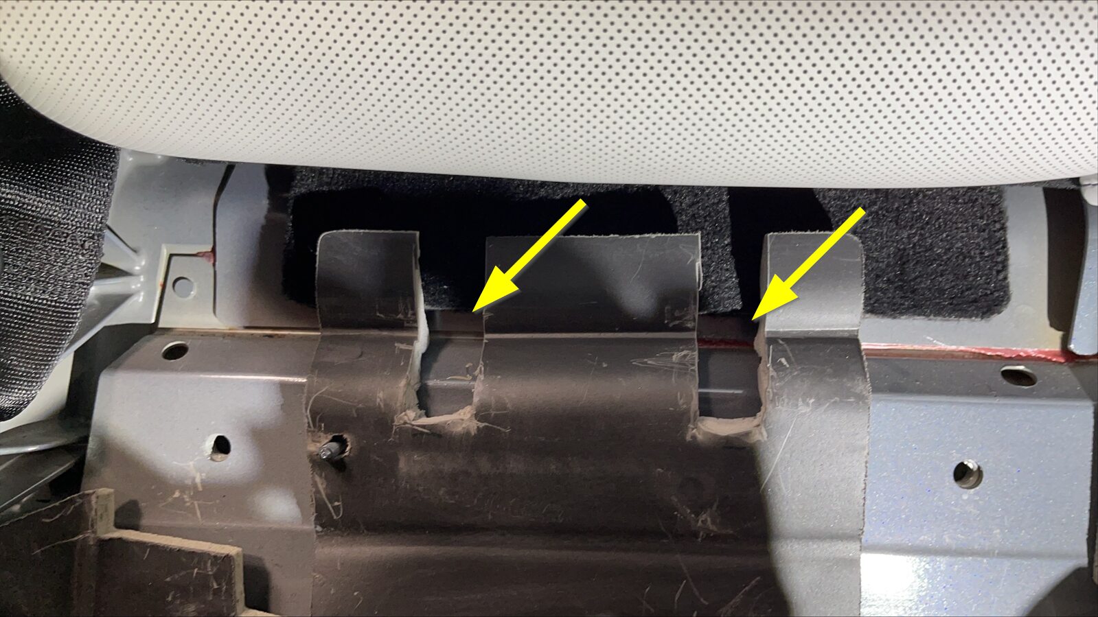 NoteTest fit isofix assembly and cut off trim from impressions left in NVH surface