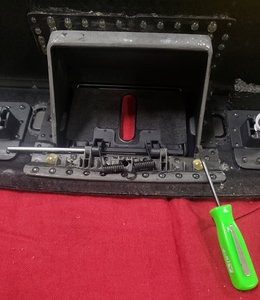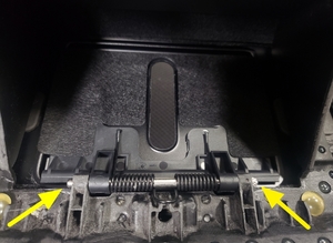 - Position the trunk striker cover into the trunk sill trim, and then position the spring on top while holding the striker cover in place as the pin is aligned to be installed. Push the pin completely through the spring to attach the striker cover.