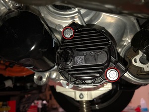 NoteTesla recommends that the oil filter is replaced with a new one upon removal. Any oil filter with visible corrosion or leaks must be replaced.NoteSpin clockwise, 3 Nm + 135 degrees Lubricate seal prior to installation.