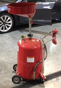 - Remove the oil drain container from underneath rear drive unit.
