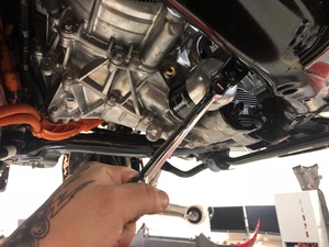 NoteTesla recommends that the oil filter is replaced with a new one upon removal. Any oil filter with visible corrosion or leaks must be replaced.