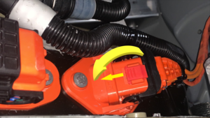 NoteVerify meter is zeroed out before performing measurement, Measure single cable. Verify ammeter is installed in correct direction. If current > 0.5A do not proceed with disconnecting HV connector. In this case, start vehicle electrical isolation again to make sure that all was properly shut down. Escalate for assistance as requiredIf current < 0.5A, Ok to disconnect and check voltage at HV plug on the battery side.