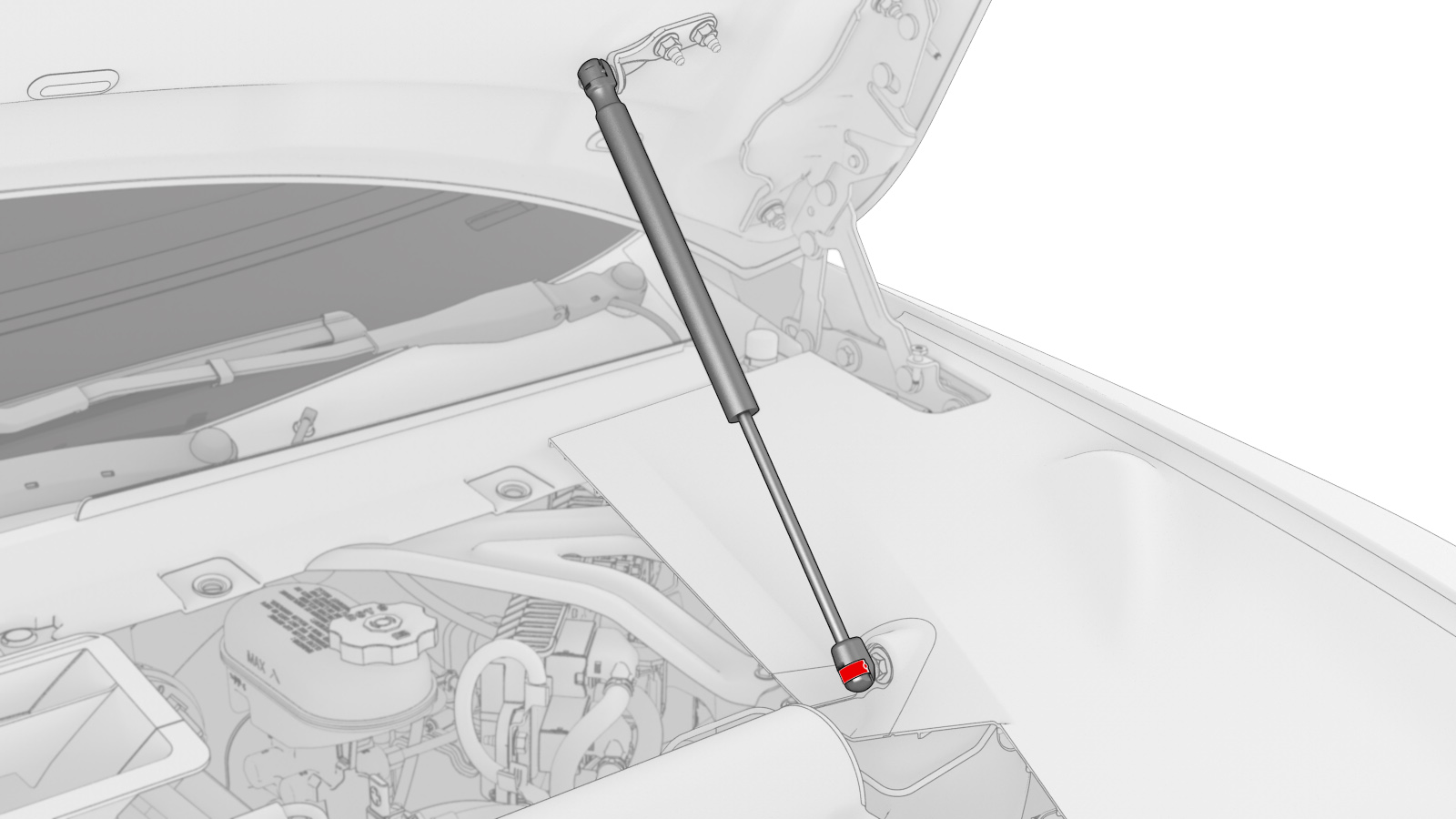 - Release the clip that attaches the hood gas strut to the vehicle.