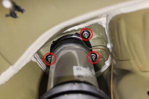 - Remove and discard the nuts (x3) that attach the LH rear active damper to the body.