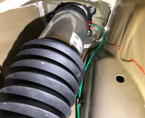 - Disconnect the electrical harness from the LH rear active damper connectors (x2) and release the grommet that attaches the electrical harness to the damper.
