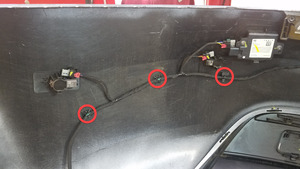 - Position the wiring harness onto the rear fascia assembly, and then install the clips (x8) and adhesive pads (x4) that attach the harness to the fascia.