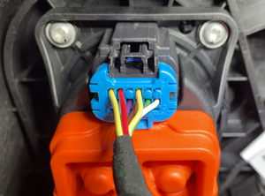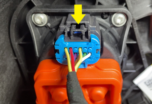 NoteTake note of harness routing.NotePull the red locking tab outwards to release the lock, and then pull again to release the electrical connector.