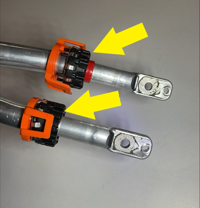 - Install the charge port to HV battery busbar safety cap. See Safety Cap - Busbar - Charge Port to HV Battery (Remove and Replace).