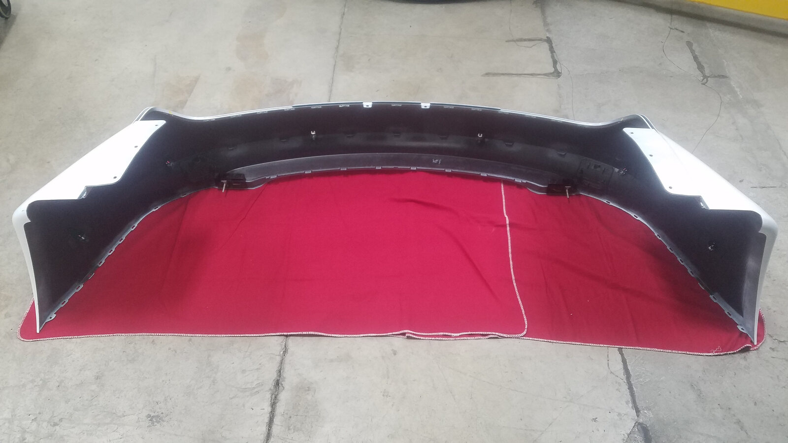 - Place the new rear fascia assembly upside down on flat and protected surface.