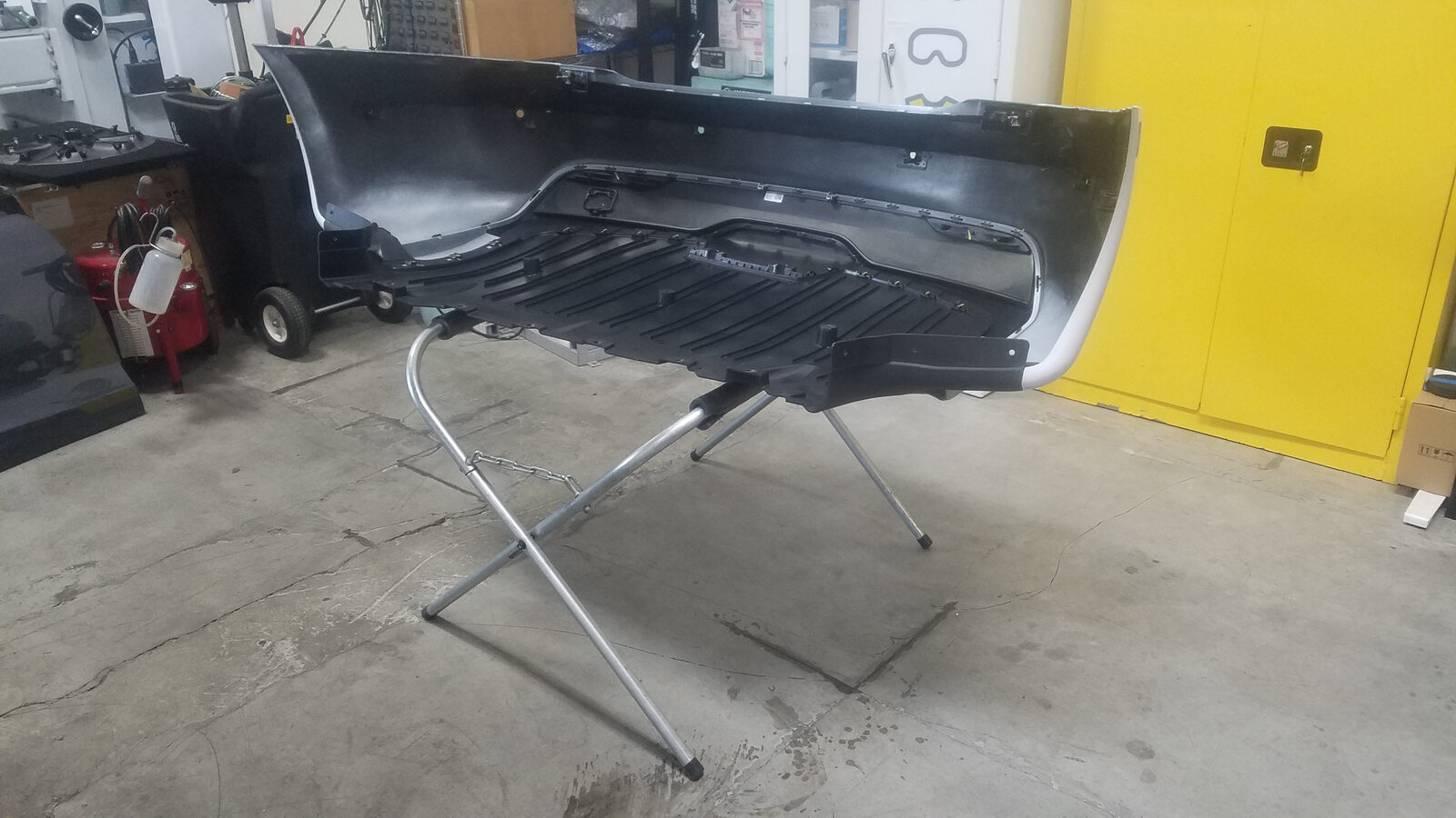- Position the rear fascia assembly upright on the workbench.